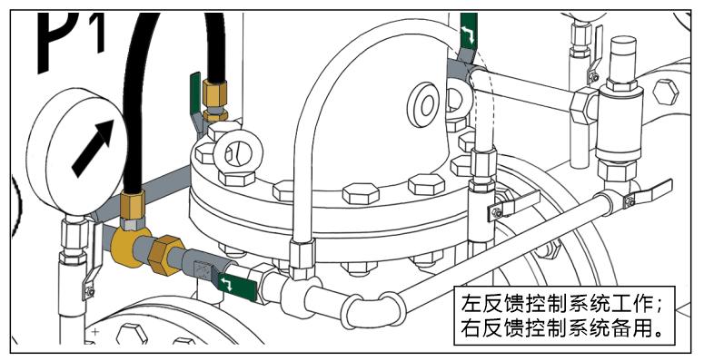 3、打開備用反饋控制系統方向的出口壓力鎖定閥(中臺球閥);